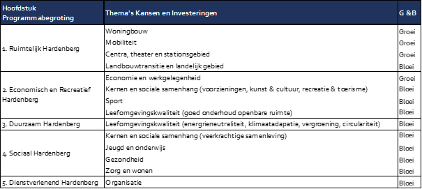 Per thema geven we in de paragraaf ‘Ambities en opgaven’ aan welke kansen en investeringen verwerkt zijn in de nu voorliggende begroting en meerjarenraming.